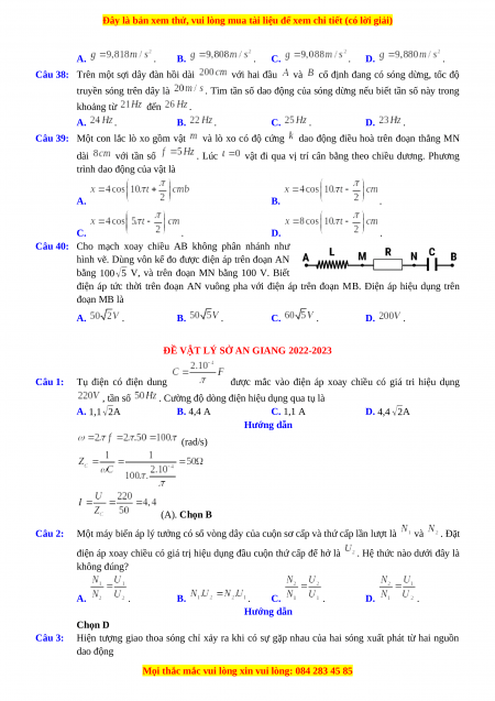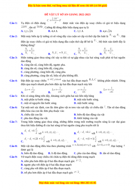 ĐỀ VẬT LÝ SỞ AN GIANG 2022-2023 Câu 1: Tụ điện có điện dung