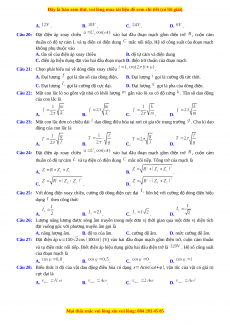 Câu 25: Với dòng điện xoay chiều, cường độ dòng điện cực đại liên hệ với cường độ dòng điện hiệu