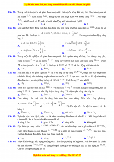 thoa khi hiệu đường đi của hai sóng từ hai nguồn cùng pha truyền tới là A. vớ . B. với . C. với . D. với . Câu 8: