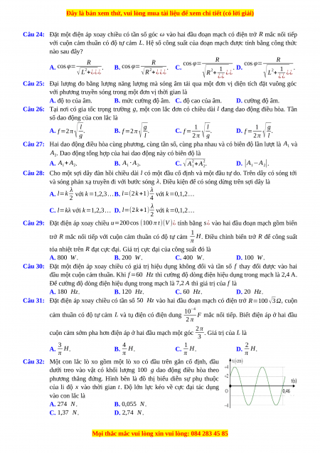 Câu 31: Đặt điện áp xoay chiều có tần số 50 Hz vào hai đầu đoạn mạch có điện trở R=100 √3Ω, cuộn