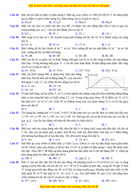 Câu 37: Đặt điện áp xoay chiều có biểu thức