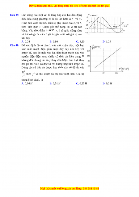 Câu 39: Dao động của một vật là tổng hợp của hai dao động