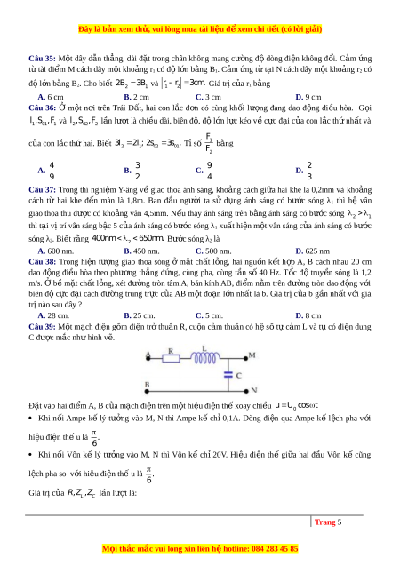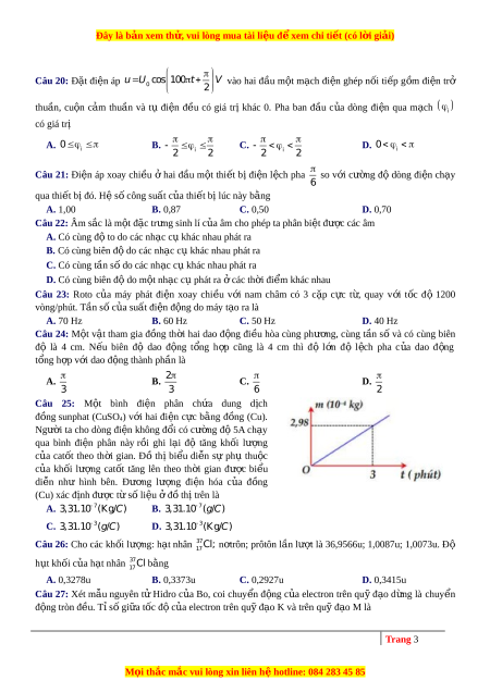 Đây là bản xem th , vu ử i lòng mua tài li u ệ đ xe ể m chi ti t ế (có l i ờ gi i ả ) Câu 20: Đặt đi n