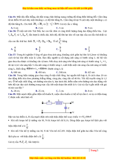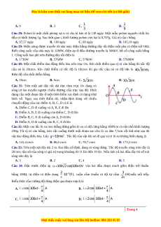 ề có giá trị khác 0. Pha ban đ u ầ c a ủ dòng đi n ệ qua m c ạ h i có giá trị A. 0 B. 0 i C. D. i 2 2 i 2 2 i Câu 21: Đi n ệ áp xoay chi u ề ở hai đ u ầ m t ộ thi t ế bị đi n ệ l c ệ h pha so v i ớ cư ng ờ độ dòng đi n ệ chạy 6 qua thiết b đó. H ị s ệ c ố ông suất c a ủ thi t ế bị lúc này b ng ằ A. 1,00 B. 0,87 C. 0,50 D. 0,70