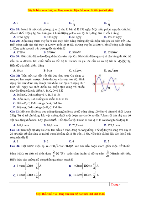 Đây là bản xem th , vu ử i lòng mua tài li u ệ đ xe ể m chi ti t ế (có l i ờ gi i ả ) 1 1 A. 9 B. 3 C. D. 3 9 Câu 28: Poloni là m t ộ ch t