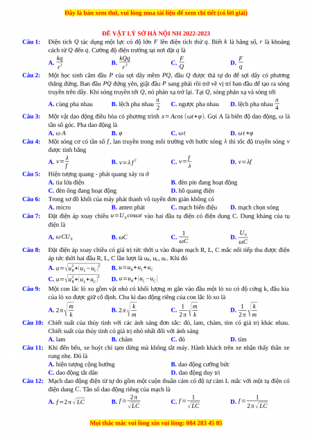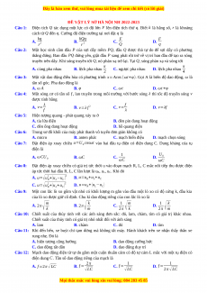 ĐỀ VẬT LÝ SỞ HÀ NỘI NH 2022-2023 Câu 1: