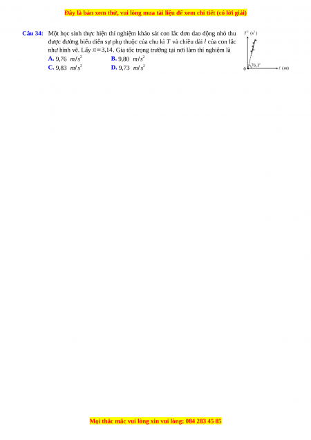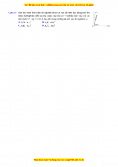 Câu 34: Một học sinh thực hiện thí nghiệm khảo sát con lắc đơn dao động nhỏ thu