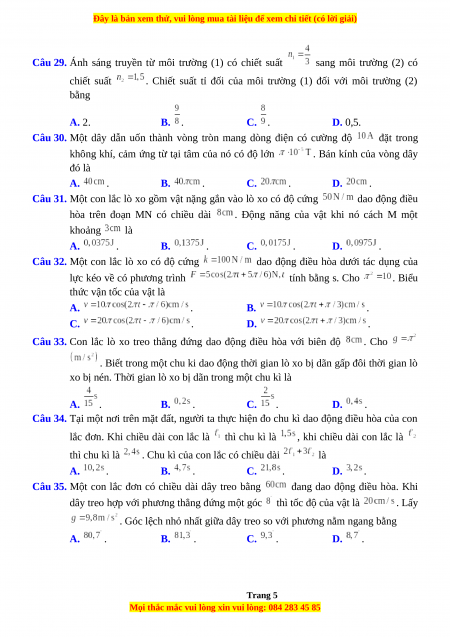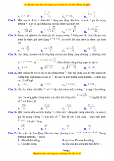 Câu 23. Trong mỗi chu kì, biên độ dao động của một con lắc giảm đi thì cơ năng của con lắc giảm đi A. . B. . C. . D. .