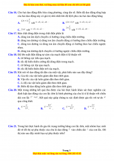 Câu 16. Cho hai dao động điều hòa cùng phương, cùng tần số. Biên độ dao động tổng hợp