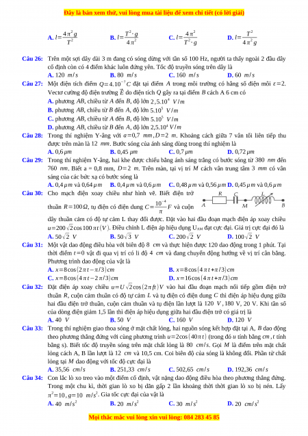 Câu 26: Trên một sợi dây dài 3 m đang có sóng dừng với tần số 100 Hz, người ta thấy ngoài 2 đầu dây