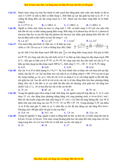 Câu 36: Người ta chiếu một chùm tia laze có công suất
