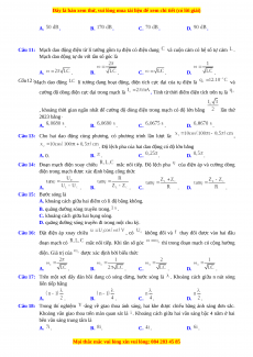 Câu 16: Đặt điện áp xoay chiều , có không đổi và thay đổi được vào hai đầu