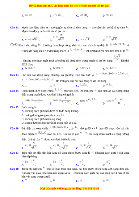 Câu 10: Cường độ âm tại một điểm trong môi trường truyền âm là . Biết cường độ âm chuẩn