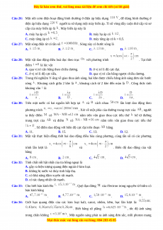 Điều kiện để có sóng dừng trên dây là A. . B. . C. . D. . Câu 8: Đặt điện áp