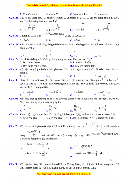 Câu 17: Các thiết bị đóng cửa tự động là ứng dụng của dao động nào sau đây?