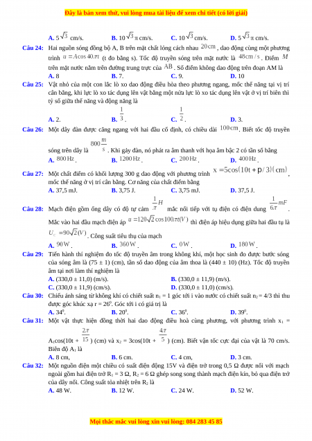 Câu 29: Tiến hành thí nghiệm đo tốc độ truyền âm trong không khí, một học sinh đo được bước sóng