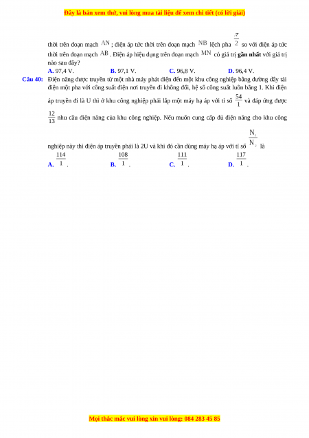 kháng của cuộn cảm này là A. . B. C. . D. . Câu 9: