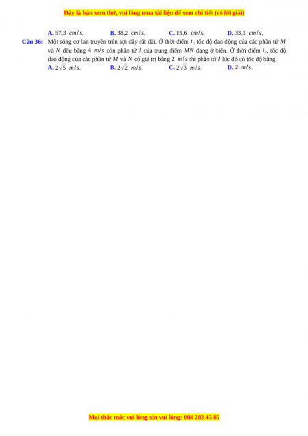 Câu 36: Một sóng cơ lan truyền trên sợi dây rất dài. Ở thời điểm