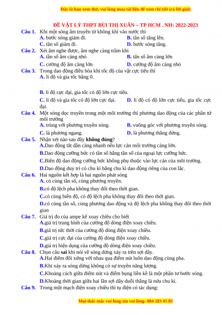 ĐỀ VẬT LÝ THPT BÙI THỊ XUÂN – TP HCM . NH: 2022-2023