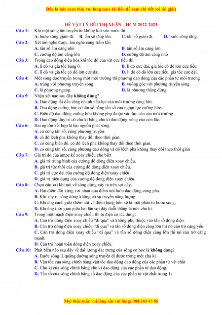 ĐỀ VẬT LÝ BÙI THỊ XUÂN – HCM 2022-2023 Câu 1: