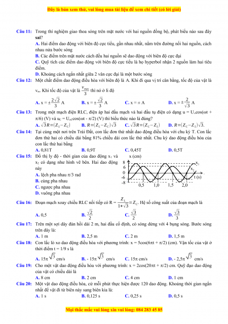 Câu 29: Giao thoa trên mặt chất lỏng với hai nguồn S