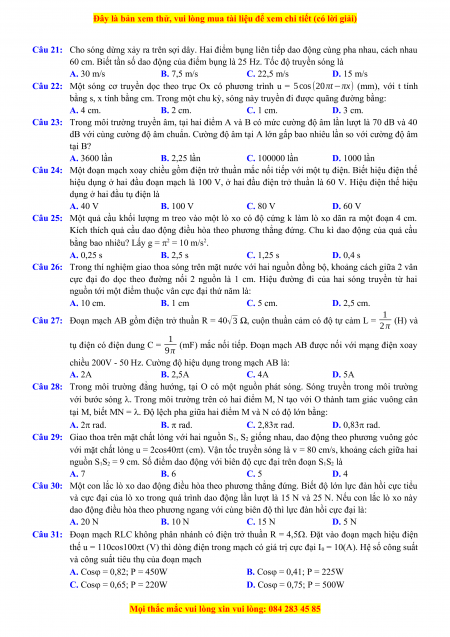 Câu 21: Cho sóng dừng xảy ra trên sợi dây. Hai điểm bụng liên tiếp dao động cùng pha nhau, cách nhau