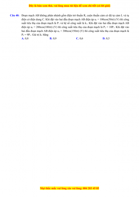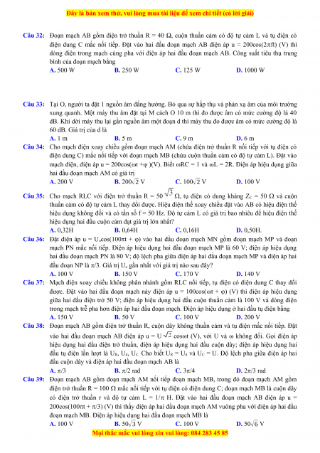 Câu 27: Đoạn mạch AB gồm điện trở thuần R = 40