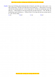 Câu 35: Cho mạch RLC với điện trở thuần R = 50 , tụ điện có dung kháng Z