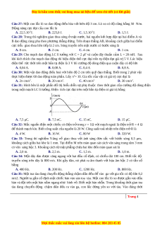 Câu 29: Cho mạch dao đ ng ộ LC lí tư ng ở v i ớ C = 2 μF và cu n ộ dây thu n ầ c m ả L = 20 mH. Sau khi kích thích cho m c ạ h dao đ ng ộ thì hi u ệ đi n ệ thế c c ự đ i ạ trên t ụ đi n ệ đ t ạ giá tr ị5 V. Lúc hi u ệ đi n t ệ hế t c ứ th i ờ trên m t ộ b n t ả ụ đi n l ệ à 3 V thì cư ng đ ờ dòng đi ộ n qua ệ cu n ộ dây có đ l ộ n ớ A. 0,04 A. B. 0,08 A. C. 0,4 A D. 0,8 A. Câu 30: M t ộ vật dao đ ng ộ đi u ề hoà v i ớ biên đ ộ 2 cm trên qu ỹ đ o ạ th ng. ẳ Bi t ế trong 2 phút v t ậ th c ự hi n đ ệ ư c ợ 60 dao đ ng t ộ oàn ph n. L ầ y π ấ 2= 10. Gia t c ố c a ủ v t ậ có giá trị c c ự đ i ạ là A. 2π cm/s2. B. 20 cm/s2. C. 40 cm/s2 D. 30 cm/s2.
