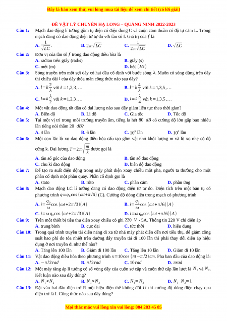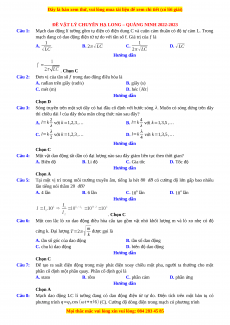 ĐỀ VẬT LÝ CHUYÊN HẠ LONG – QUẢNG NINH 2022-2023 Câu 1: