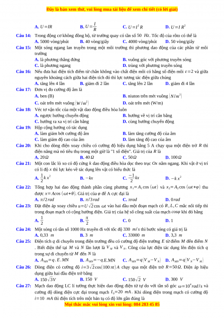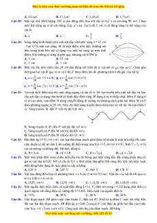 Câu 14: Trong động cơ không đồng bộ, từ trường quay có tần số 50 Hz. Tốc độ của rôto có thể là A. 5000 vòng/phút B. 40 vòng/giây C. 4000 vòng/phút D. 50 vòng/giây