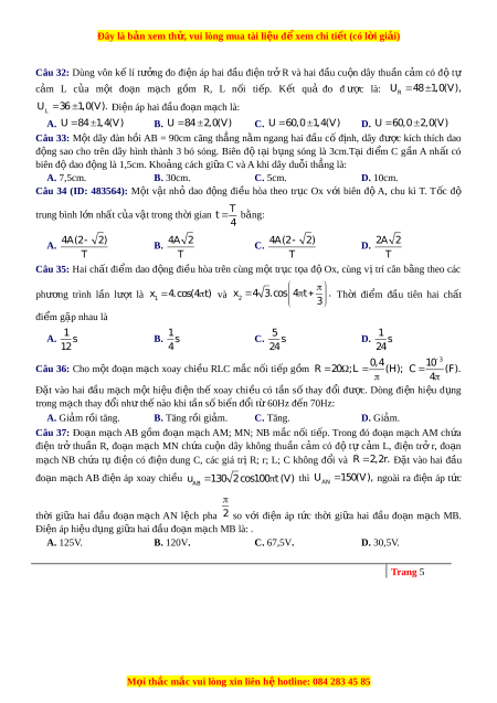 Câu 32: Dùng vôn k lí t ng đo đi n áp hai đ u đi n tr R và hai đ u cu n dây thu n c m có đ t