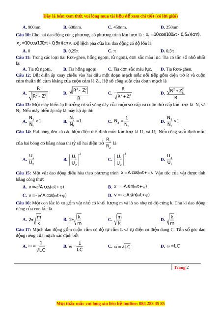 Đây là bản xem th , vu ử i lòng mua tài li u ệ đ xe ể m chi ti t ế (có l i ờ gi i ả ) Câu 18: Đặt đi n ệ áp xoay chi u ề u U cos2 f t(V) có U ổ ổ ượ ầ 0