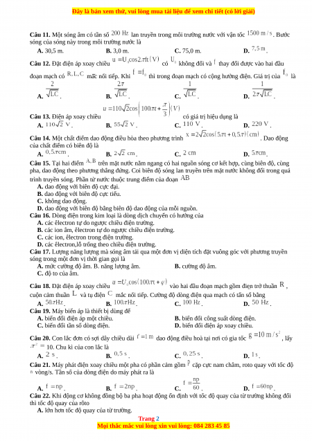 sóng của sóng này trong môi trường nước là A. 30,5 m. B. 3,0 m. C. 75,0 m. D. .