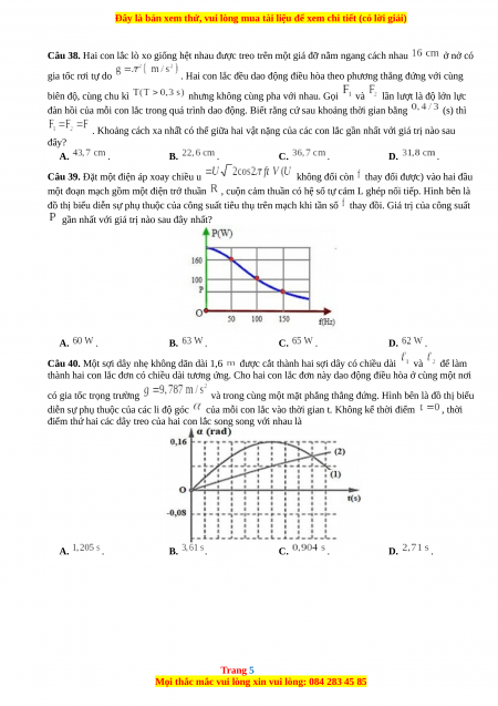 10. Chu kì của con lắc là A. . B. . C. . D. .