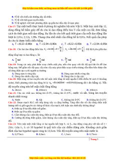 giữ nguyên các thông s khá ố c c a ủ mạch, k t ế lu n nà ậ o dư i ớ đây không đúng? A. Đi n á ệ p ha ở i đầu đi n t ệ rở giảm. B. Đi n á ệ p ha ở i đầu tụ giảm. C. Cảm kháng c a ủ cu n ộ dây tăng, đi n á ệ p ha ở i đầu cu n ộ dây thay đ i ổ . D. Cư ng ờ độ dòng đi n ệ gi m ả , c m ả kháng c a ủ cu n ộ dây tăng, đi n ệ áp ở hai đ u ầ cu n ộ dây không đ i ổ . Câu 23: Trên m t ặ m t ộ ch t ấ l ng ỏ có hai ngu n ồ k t ế h p ợ S1 và S2, dao đ ng ộ cùng pha v i ớ t n ầ số f = 25Hz. Gi a