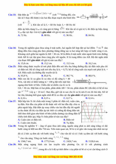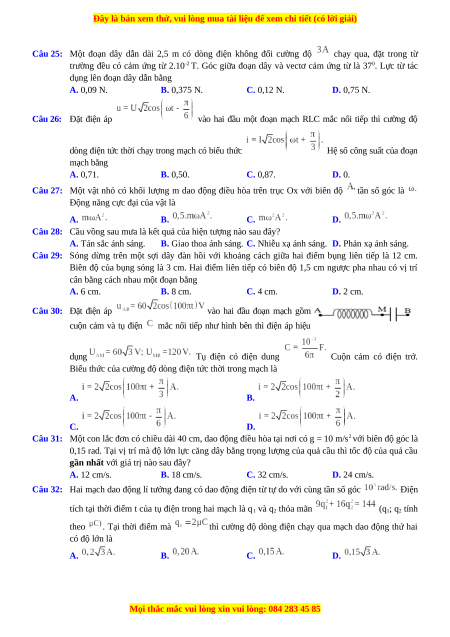 Câu 30: Đặt điện áp vào hai đầu đoạn mạch gồm