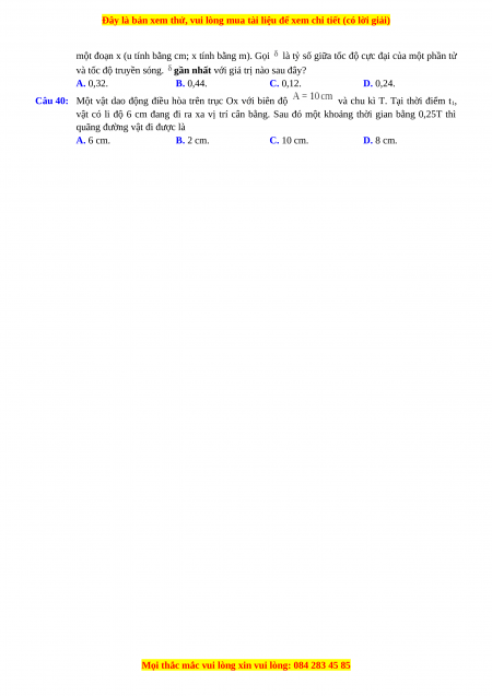 Câu 40: Một vật dao động điều hòa trên trục Ox với biên độ và chu kì T. Tại thời điểm t