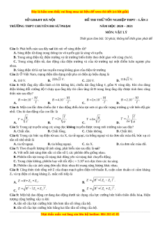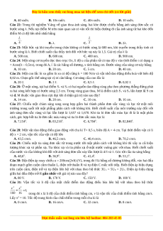 ồ N vòng dây. Khi cho dòng đi n ệ không đ i ổ cư ng ờ độ I ch y ạ qua ng ố dây thì c m ả ng ứ t ừ B trong lòng ng ố dây đư c ợ tính theo công thức nào sau đây? NI NI NI NI 7 B 4 .10 . 7 B 4 .10 . 7 B 2 .10 . 7 B 2 .10 . A. B. C. D. Câu 4: M t ộ con l c ắ đ n ơ chi u ề dài ℓ dao đ ng ộ đi u ề hòa t i ạ n i ơ có gia t c ố tr ng ọ trư ng ờ g v i ớ biên đ ộ góc nh . ỏ Chu kì dao đ ng c ộ ủa con lắc là g g 1 T . T 2 . T 2 . T . A. B. g C. D. 2 g Câu 5: Trong s t ự ruy n s ề óng c , ơ sóng d c