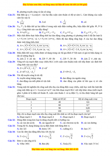 (t +1/ 600)( s) cường độ dòng điện tức thời trong mạch bằng không và đang giảm. Công suất