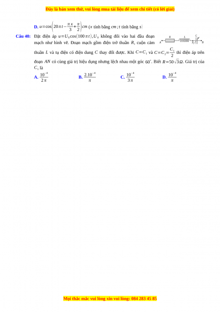 C. lệch pha π /3 D. cùng pha Câu 5: