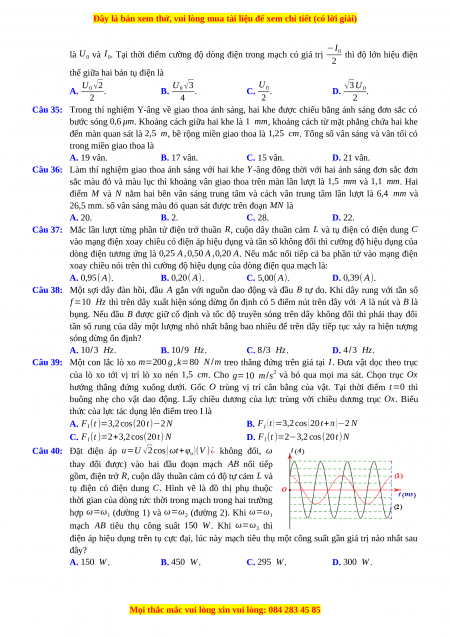 Câu 40: Đặt điện áp