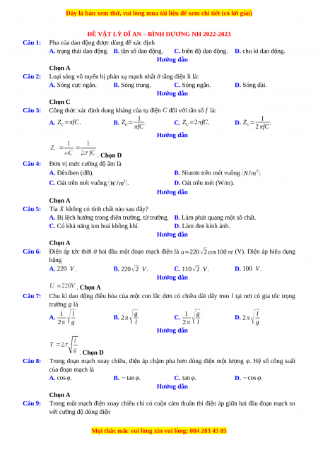 ĐỀ VẬT LÝ DĨ AN – BÌNH DƯƠNG NH 2022-2023 Câu 1: