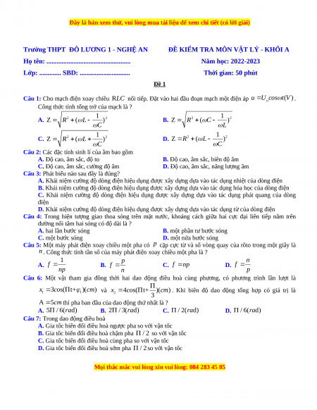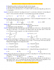 Câu 1: Cho mạch điện xoay chiều RLC nối tiếp. Đặt vào hai đầu đoạn mạch một điện áp u U