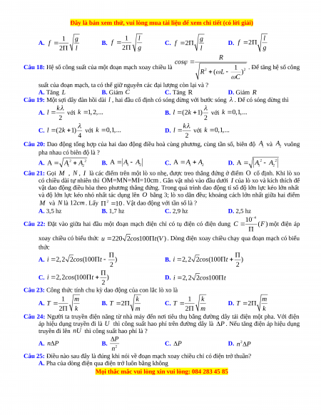 Câu 18: Hệ số công suất của một đoạn mạch xoay chiều là 1 . Để tăng hệ số công 2 2 R (L ) C