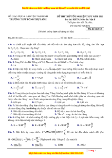 Đề thi thử Vật Lí trường Đông Thụy Anh năm 2021