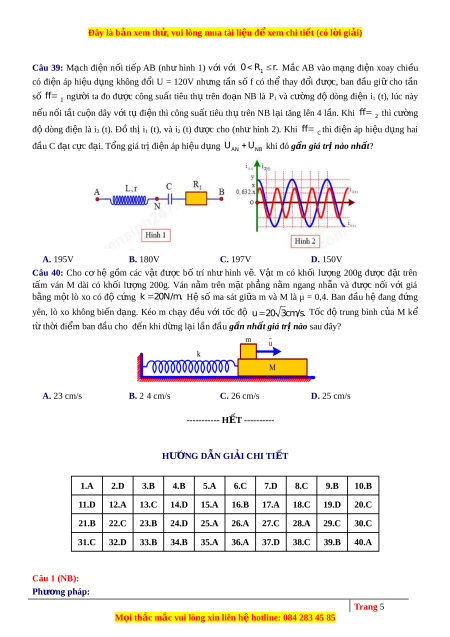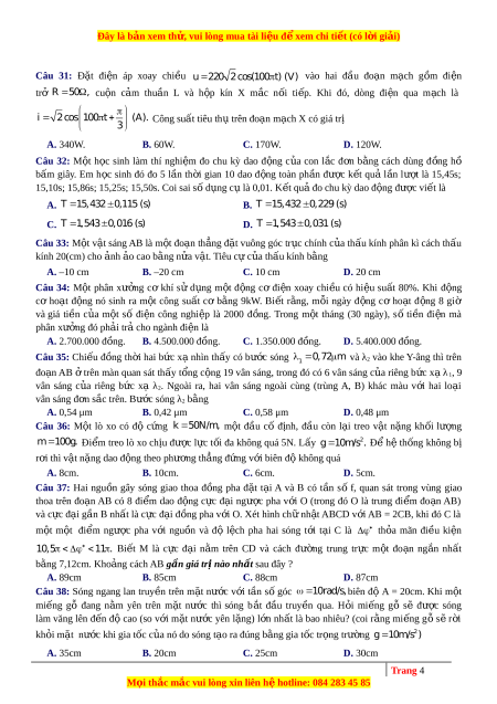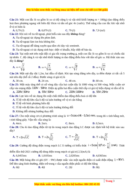 Đây là bản xem th , vu ử i lòng mua tài li u ệ đ xe ể m chi ti t ế (có l i ờ gi i ả ) Câu 31: Đặt đi n ệ áp xoay chi u ề u 2 20 2cos(100 t