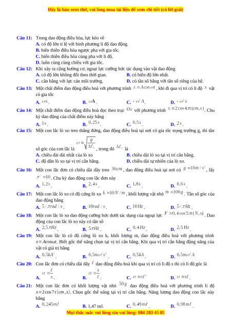 Câu 11: Trong dao động điều hòa, lực kéo về