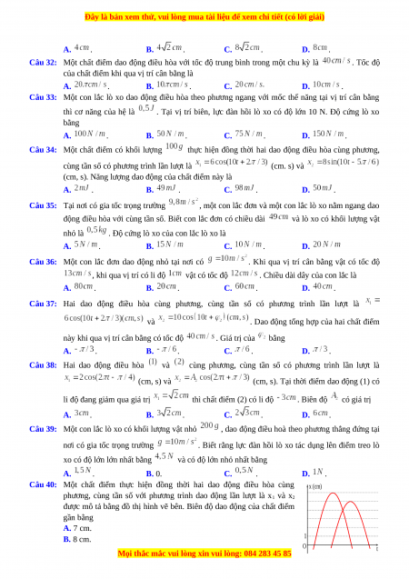 Câu 34: Một chất điểm có khối lượng thực hiện đồng thời hai dao động điều hòa cùng phương,