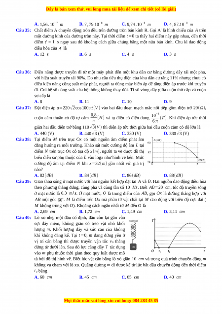 Câu 26: Một vật tham gia đồng thời hai dao động điều hòa cùng phương, có phương trình lần lượt là